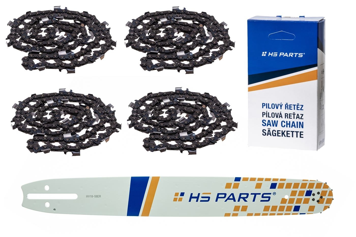 Łańcuchy półprofesjonalne do pił łańcuchowych HS PARTS wykonane są z niemieckiej stali z wykorzystaniem szwajcarskich łożysk uszczelnionych. Konstrukcja ze stali laminowanej nadaje się do większości warunków skrawania. Łatwe, proste sterowanie i mniejszy odrzut.