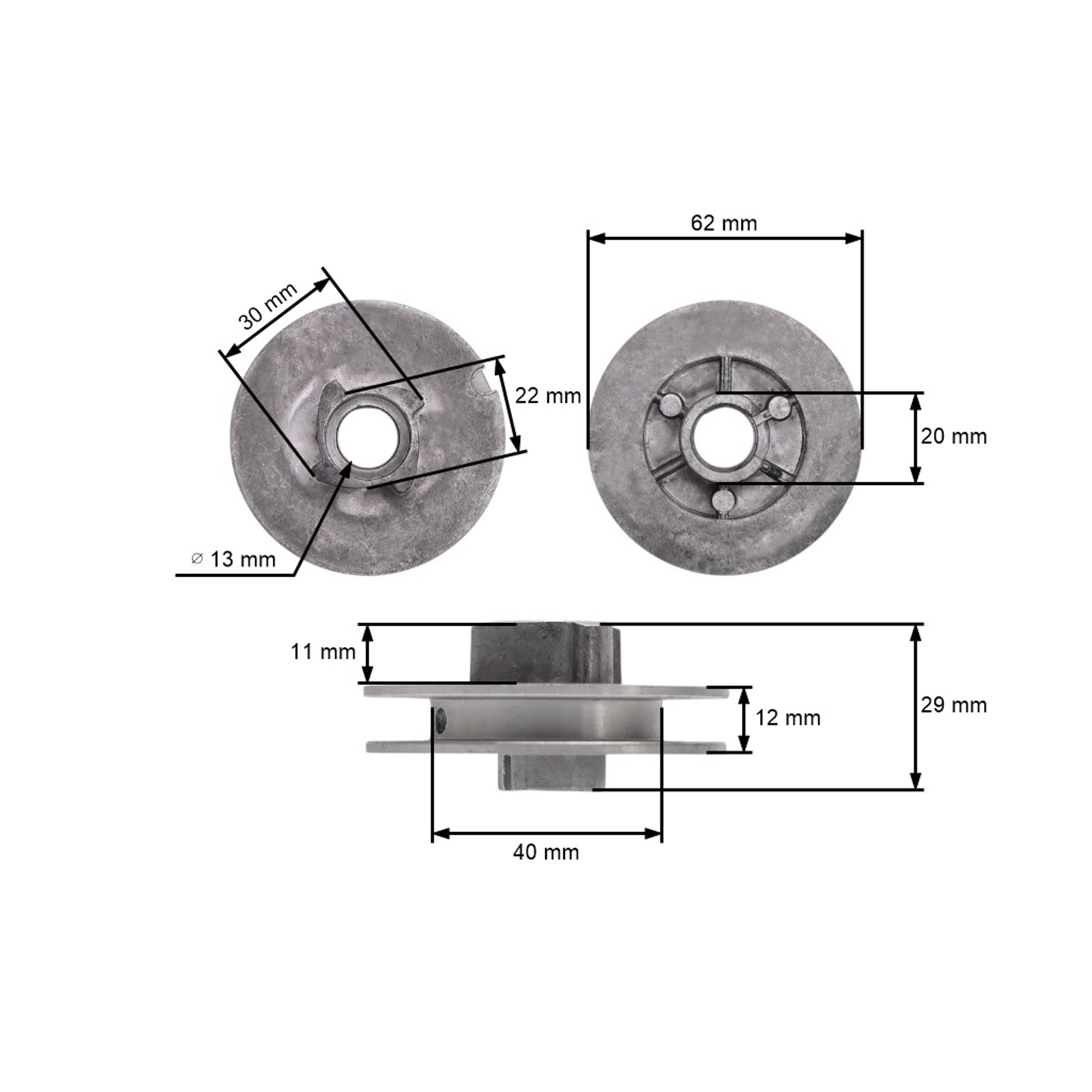 Opis i specyfikacja produktu: Koło rozrusznika do pił chińskich i pił łańcuchowych z rynku hobbystycznego o pojemności silnika 45 cm3 52 cm3 (R-4T-AL)