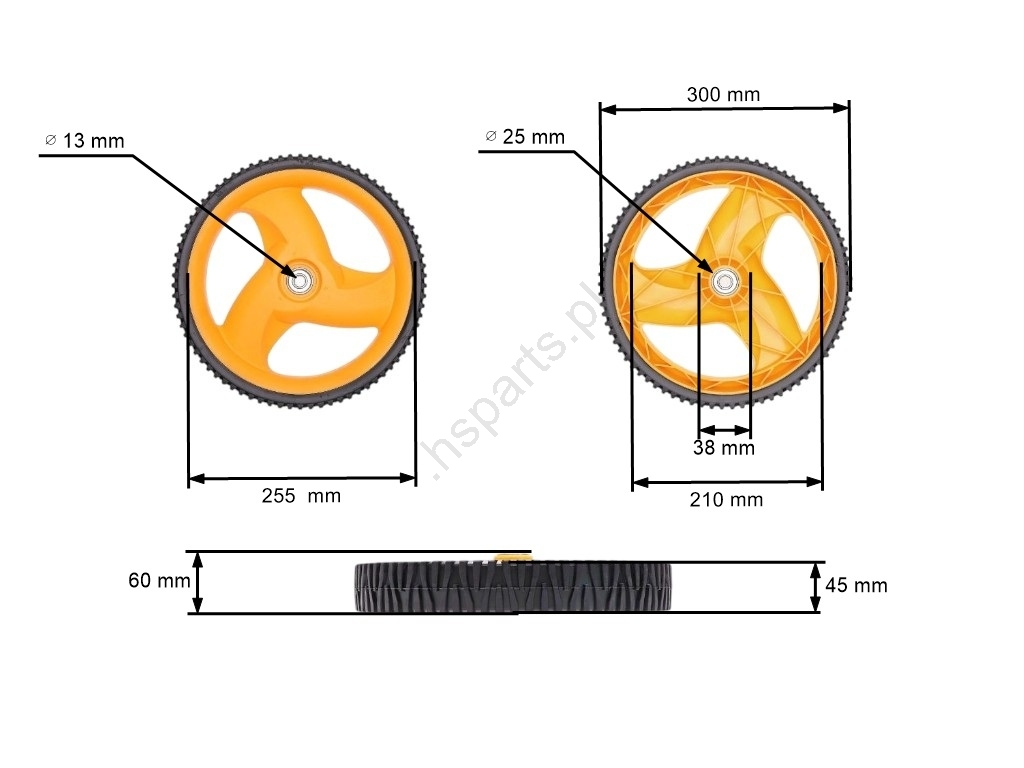 Opis i specyfikacja produktu: Koło tylne do kosiarek Husqvarna Partner Electrolux Craftsman McCulloch Poulan (OEM 532403509 532432747 532432749 431880X460 193929X427)