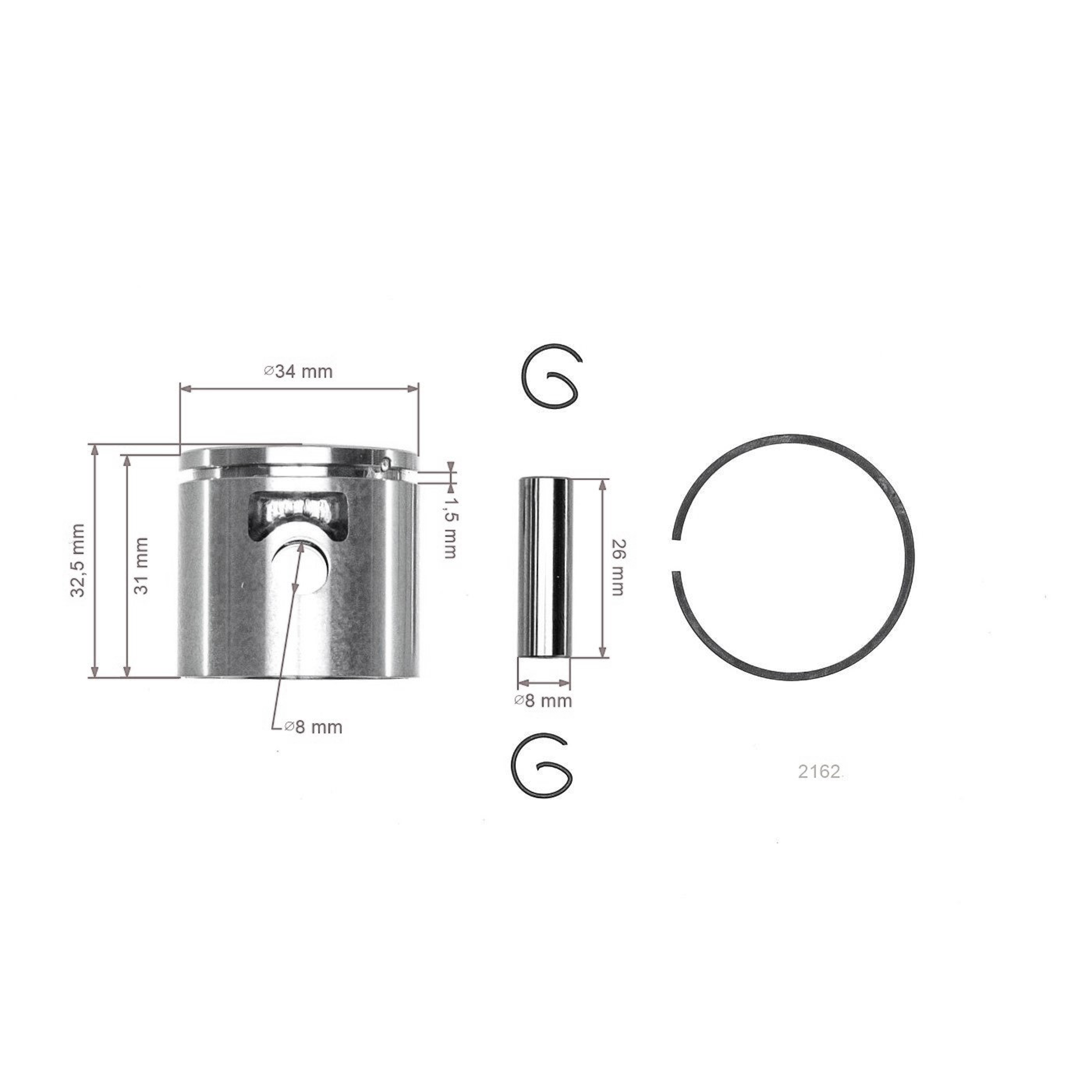 Zawartość opakowania: 1x tłok, 2x zawleczka, 1x pierścień tłokowy, 1x szpilka