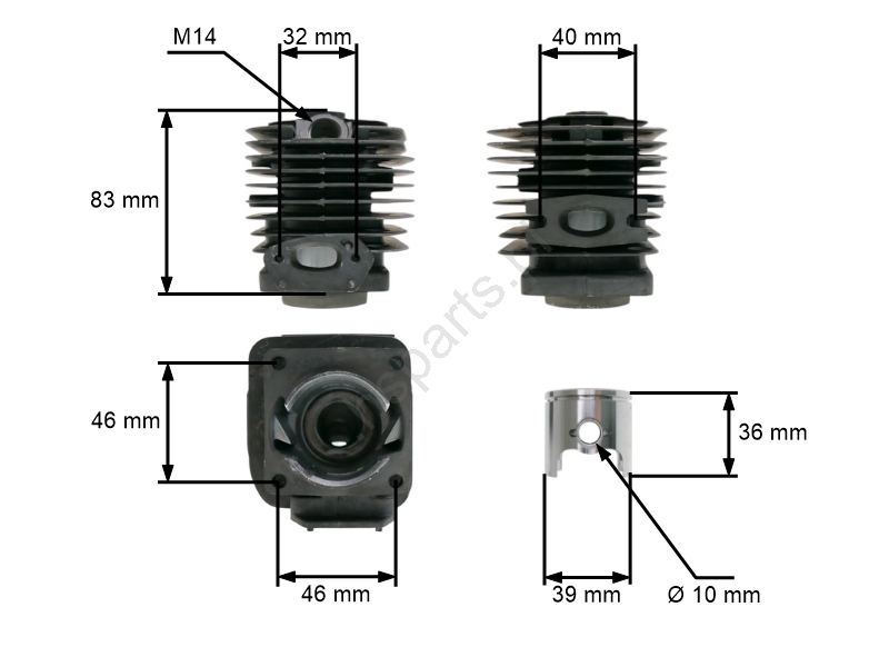 Opis i specyfikacja produktu: Kompletny tłok i cylinder do chińskich pił łańcuchowych 38cc 39 mm twardsza stal NAC Floram