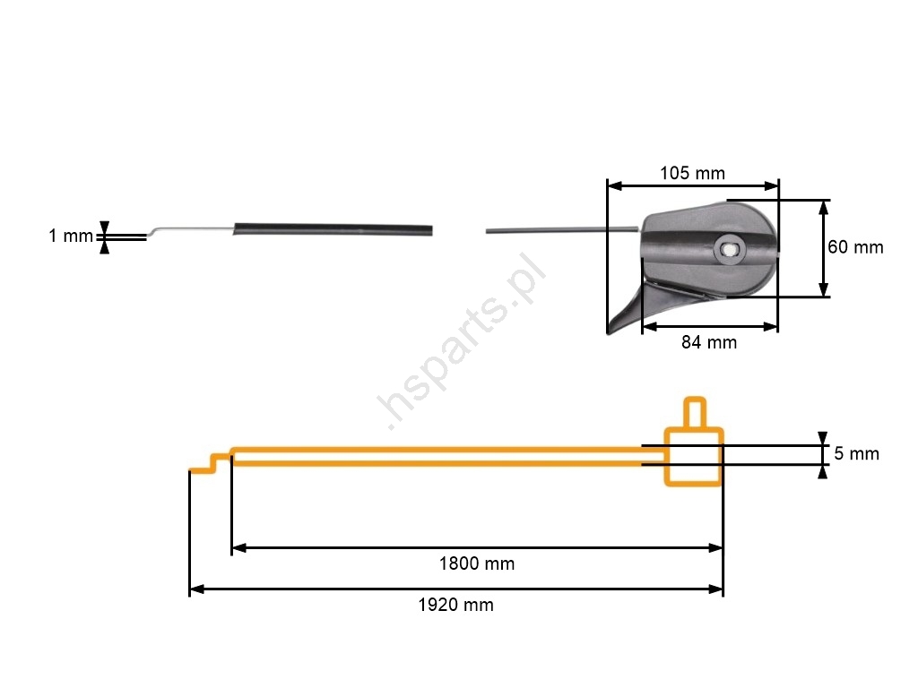 Opis i specyfikacja produktu: Kompletny uniwersalny kabel gazowy ze sterownikiem z tworzywa sztucznego do kosiarek silnikowych o wymiarach 1920 mm x 1800 mm