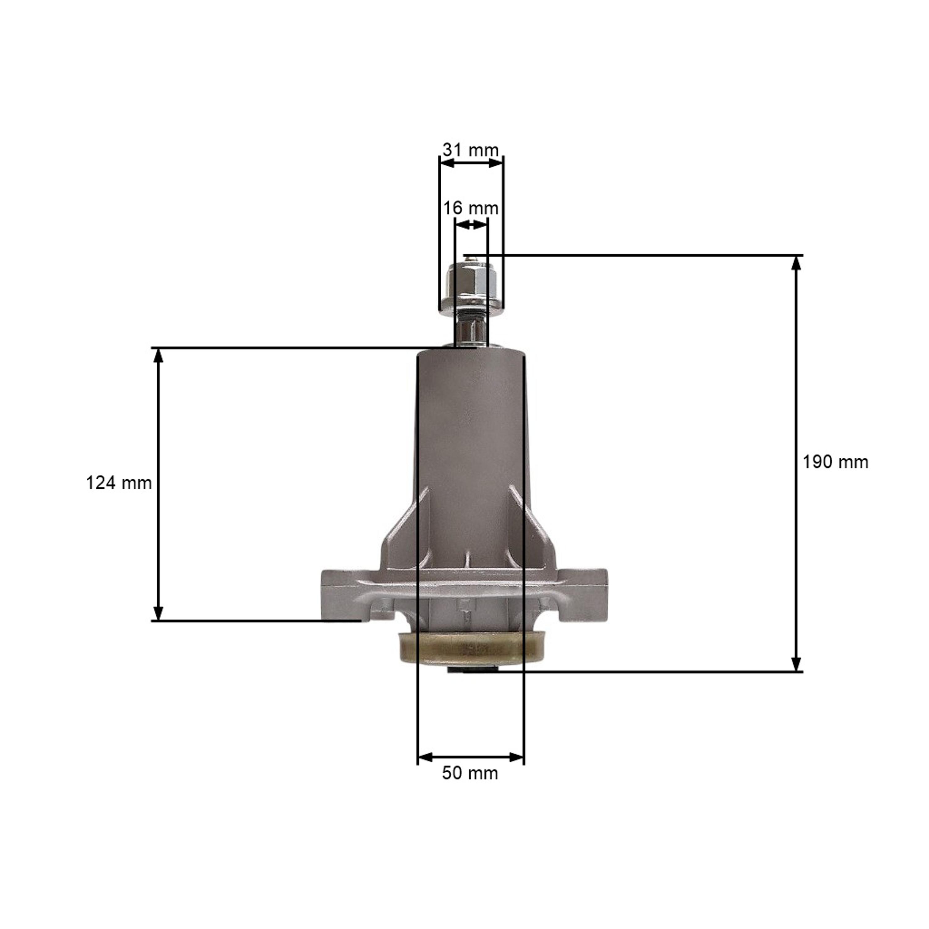Opis i specyfikacja produktu: Mandrela noża kosiarki do ciągników ogrodowych Husqvarna Jonsered Partner McCulloch Craftsman Poulan (OEM 532192870 587819701 532192872 187292 192870)
