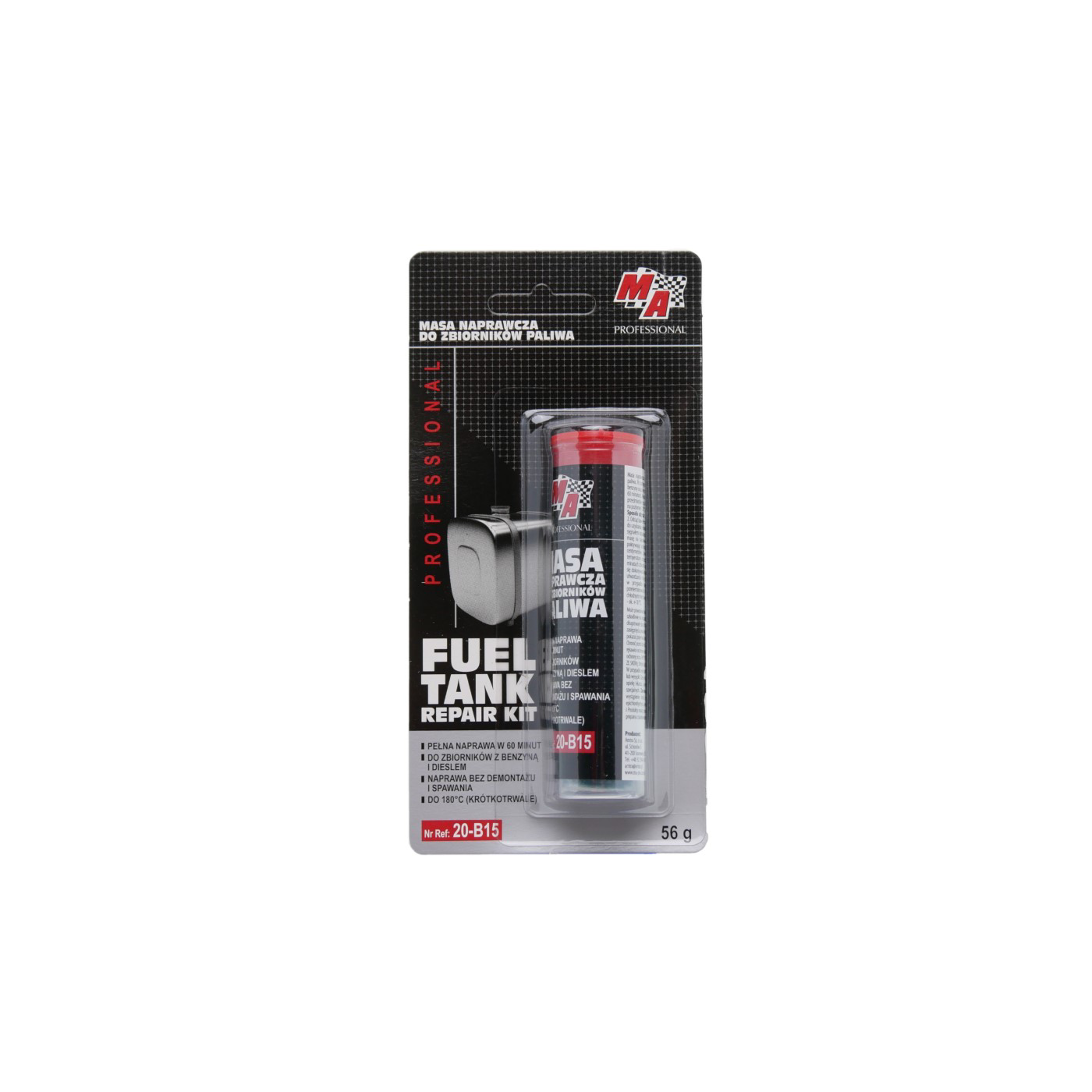 Opis i specyfikacja produktu: Masa naprawcza do zbiorników paliwa MA PROFESSIONAL 56g