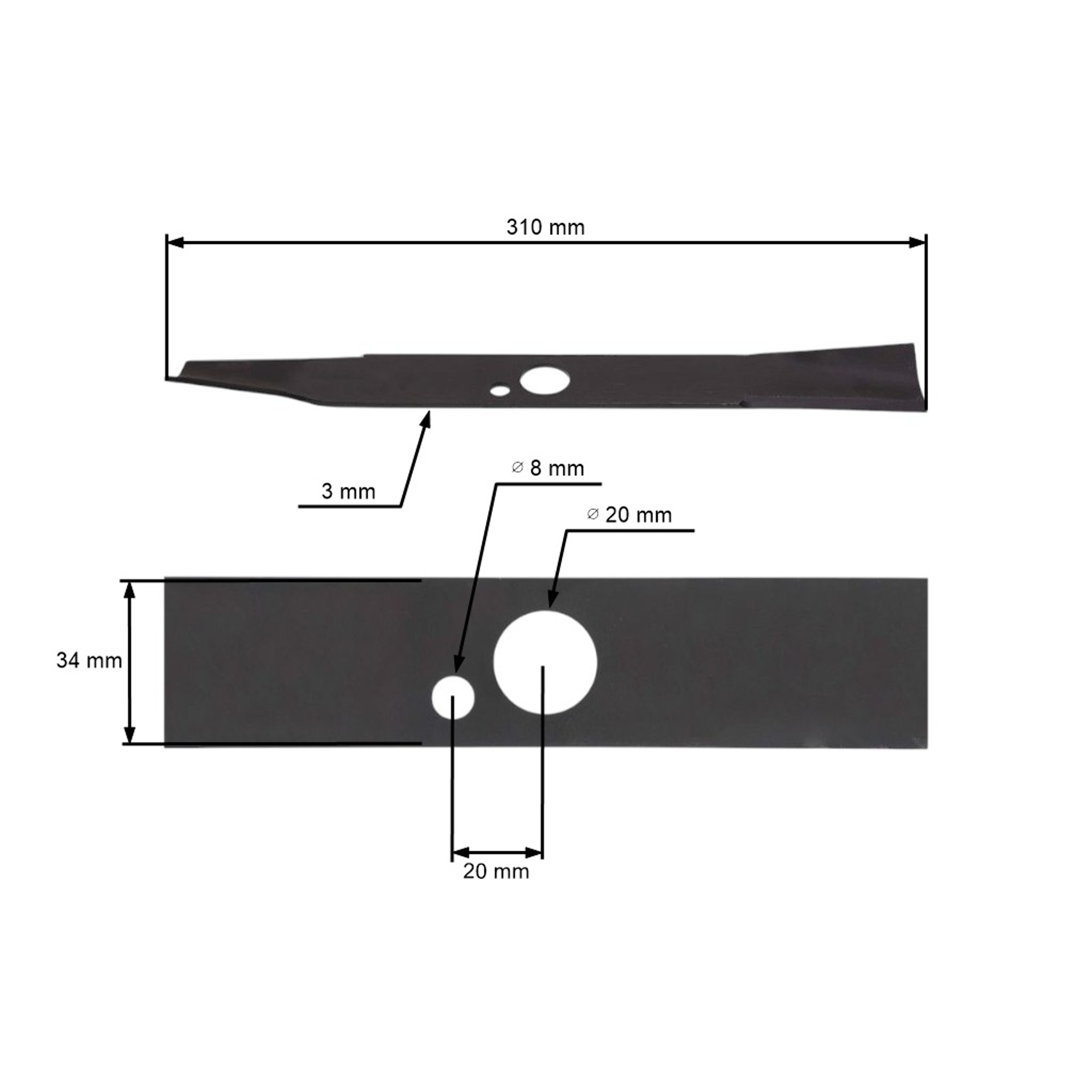 Opis i specyfikacja produktu: Nóż kosiarki 31 cm (12") do kosiarek elektrycznych Valex Estroil Partner (OEM 1489820 5950481)