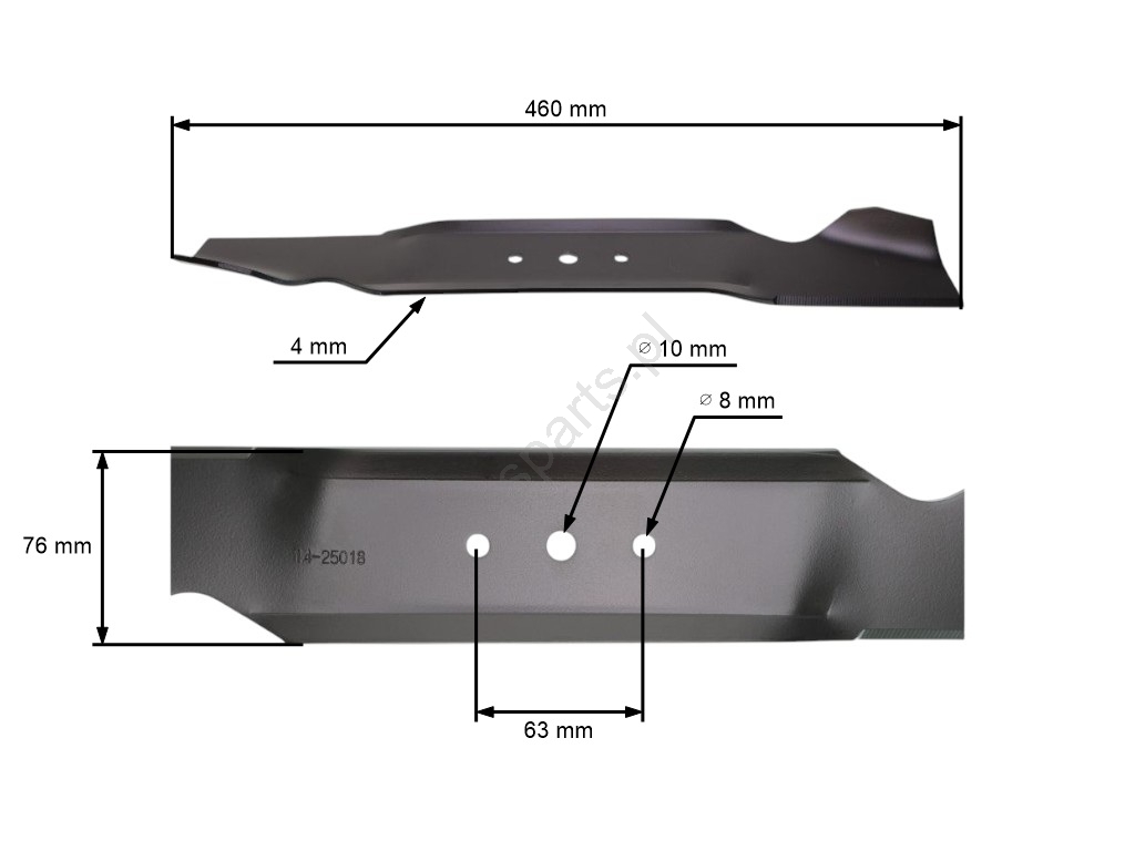 Opis i specyfikacja produktu: Nóż kosiarki 46 cm (18") z wyrzutem bocznym do traktorów ogrodowych MTD (OEM 742-0496 742-0496A 942-0496)