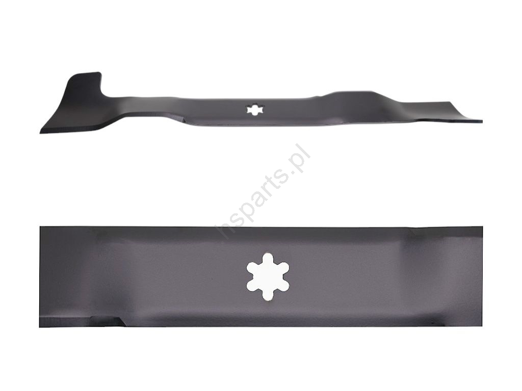 Opis i specyfikacja produktu: Nóż kosiarki prawy 49 cm (19") z podbieraczem do traktorków ogrodowych Husqvarna Jonsered Partner McCulloch Poulan Jonsered Craftsman AYP (OEM 532427985)