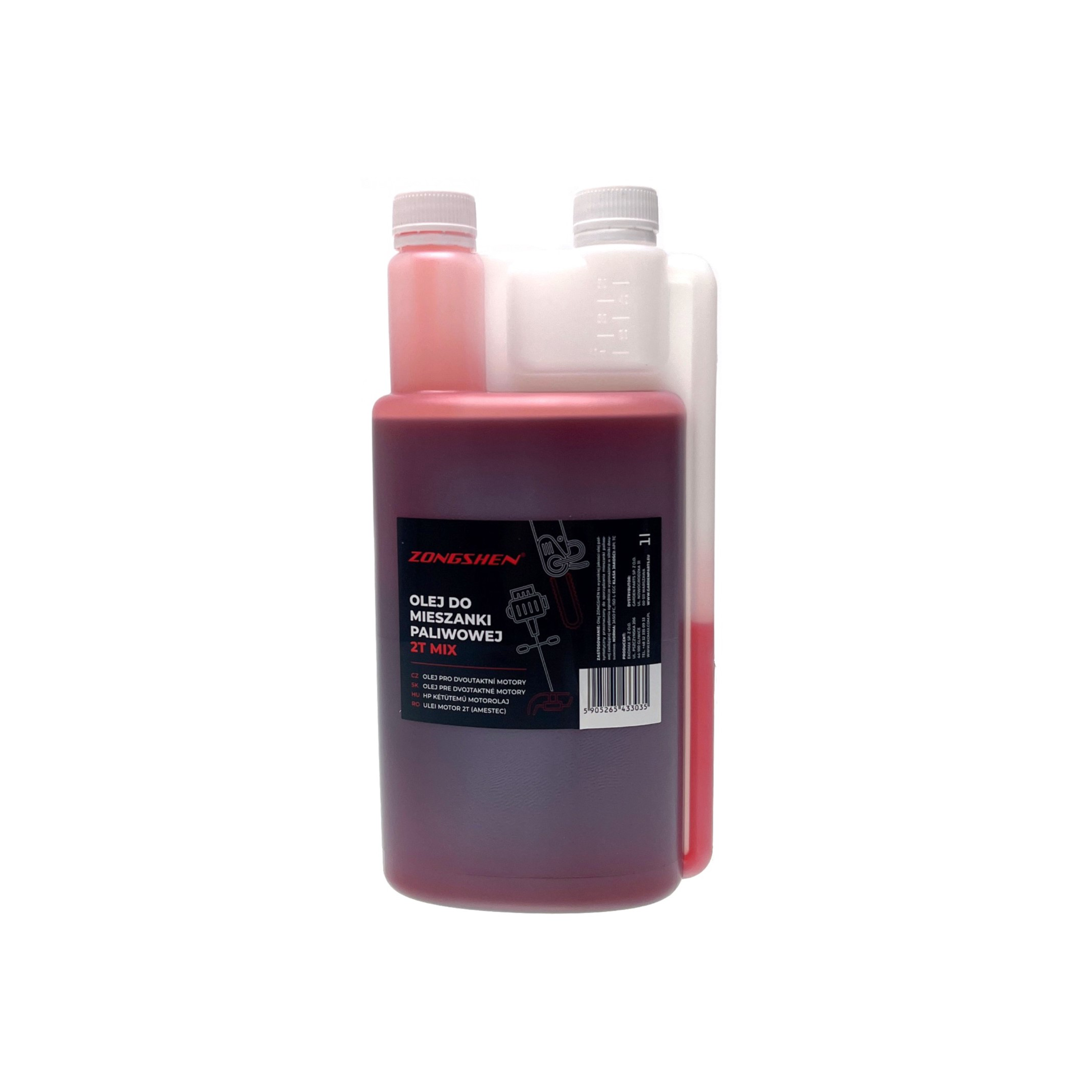 Opis i specyfikacja produktu: Olej benzynowy Zongshen do silników dwusuwowych 1 L czerwony do pił łańcuchowych, kos spalinowych i innego sprzętu ogrodniczego z silnikiem dwusuwowym