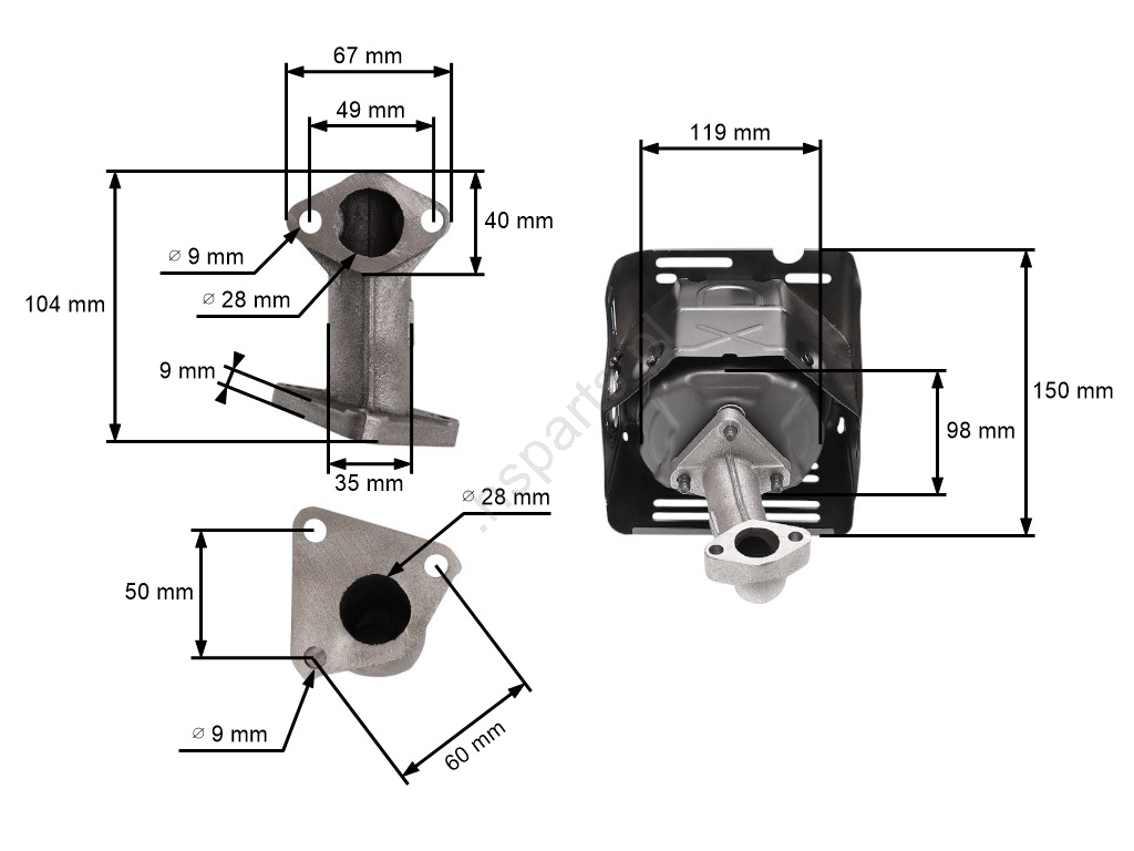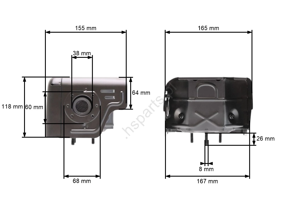 Opis i specyfikacja produktu: Tłumik do silników Honda GX240 GX270 Zongshen 177F (OEM 18310-ZE2-W00 18310-ZE2-W01)