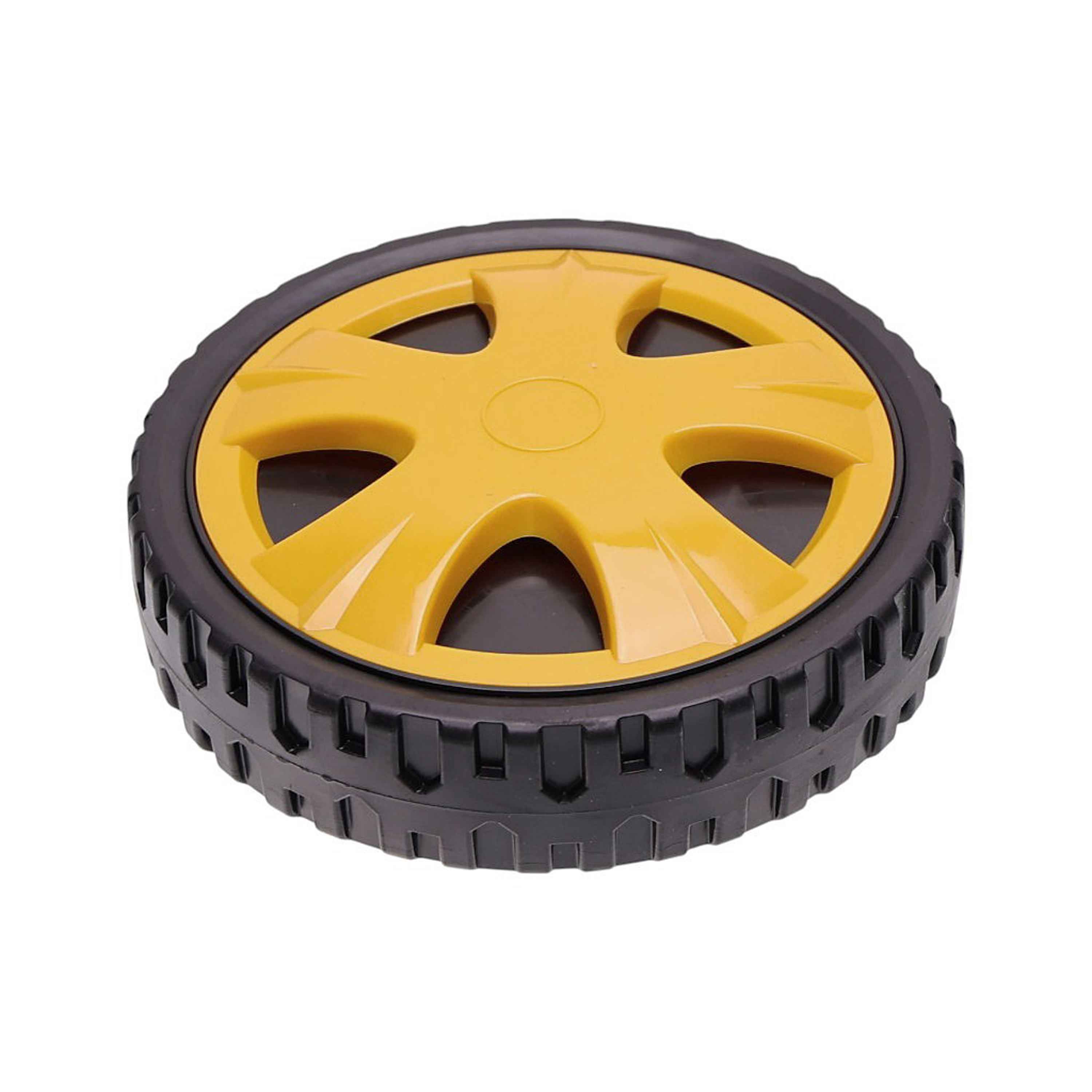 Opis i specyfikacja produktu: Uniwersalne plastikowe kółko z łożyskiem do kosiarek silnikowych i elektrycznych o średnicy 200 mm