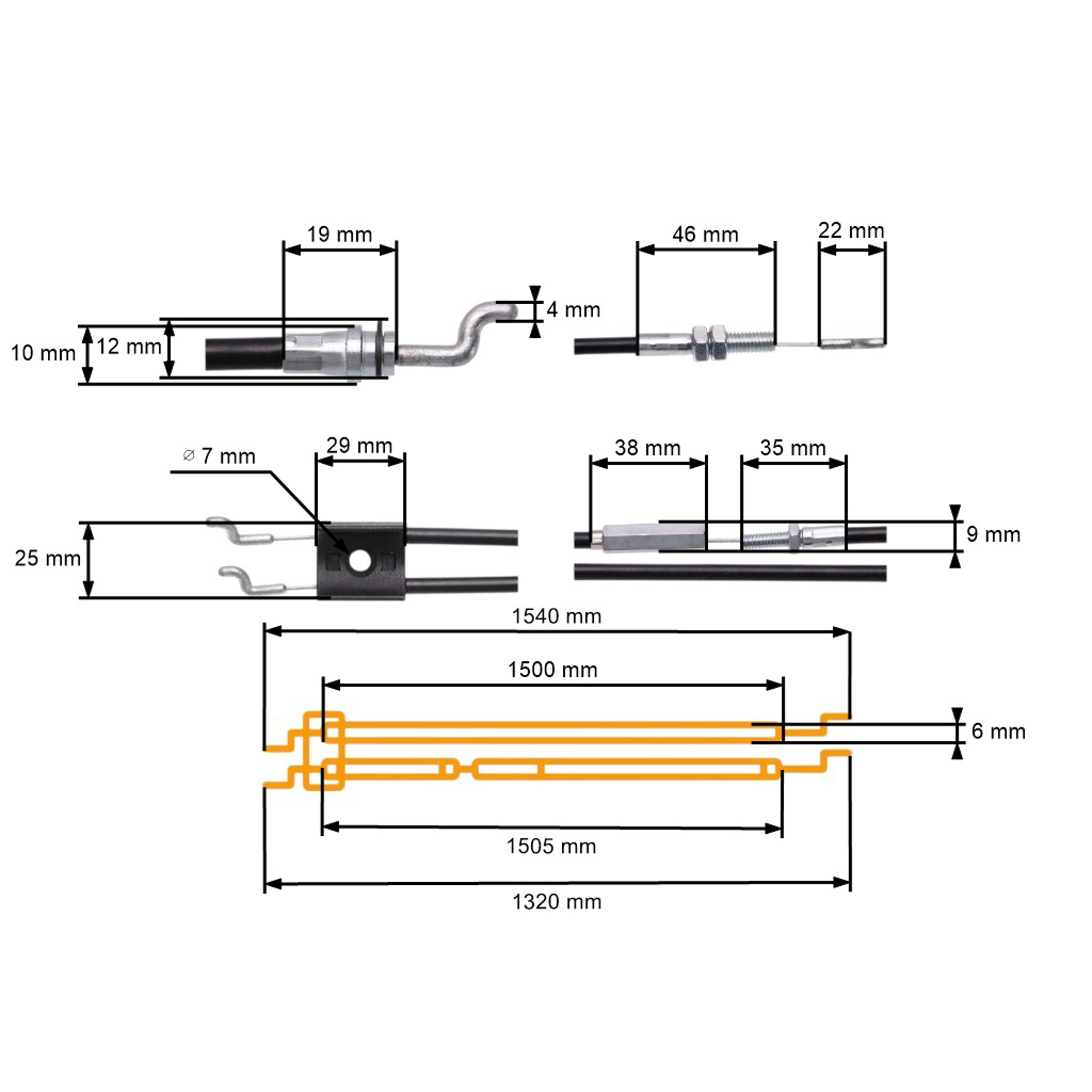 Opis i specyfikacja produktu: Zestaw kompletnych linek napędu kół do włączania i wyłączania silnika do kosiarek silnikowych chińskich oraz kosiarek z marketów hobbystycznych Hortmasz Hortuz